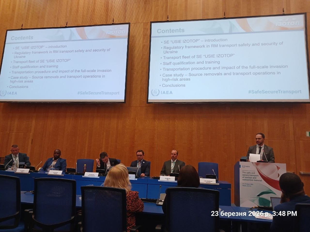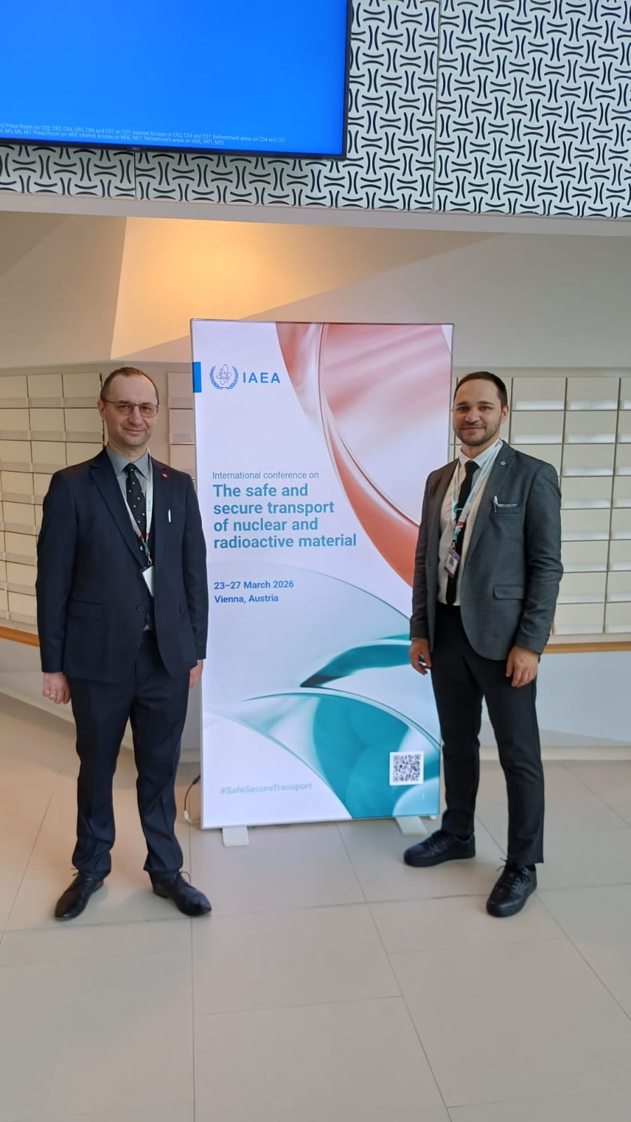 👨🔬 Начальник відділу радіаційної безпеки та вимірювання іонізуючих випромінювань Іван Тивонюк і начальник відділу з міжнародного співробітництва Андрій Кравець взяли активну участь у конференції Міжнародного агентства з атомної енергії (МАГАТЕ) з безпечного перевезення ядерних та радіоактивних матеріалів, яка відбулася у штаб-квартирі МАГАТЕ у м. Відень з 23 по 27 березня 2026 року.